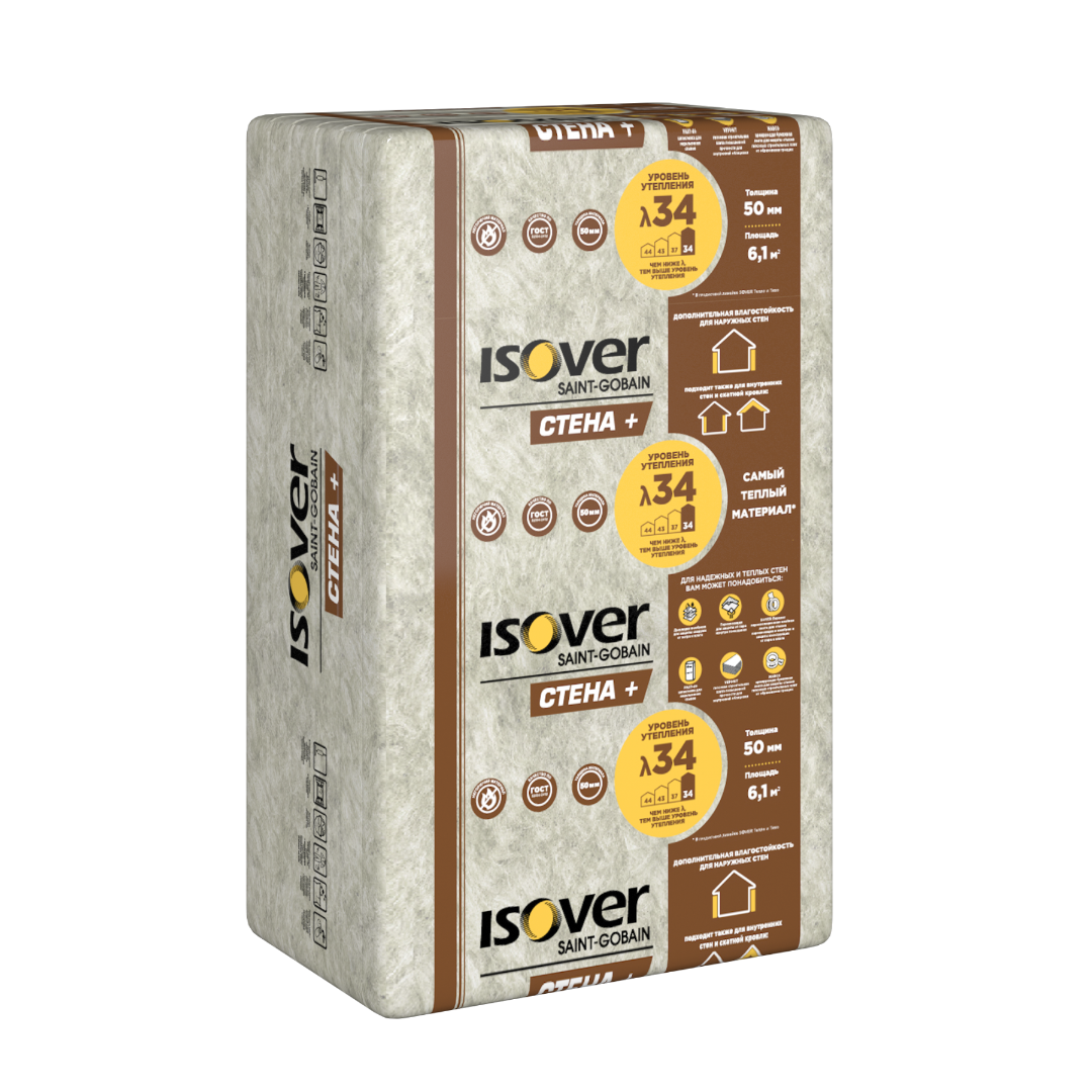 ISOVER Стена Плюс - это минеральный утеплитель на основе кварца в плитах, разработанный специально для внешних и внутренних стен. Благодаря высокой упругости и прочности материал подходит для крепления на дюбель, а также надежно фиксируется в каркасе без дополнительных крепежей.